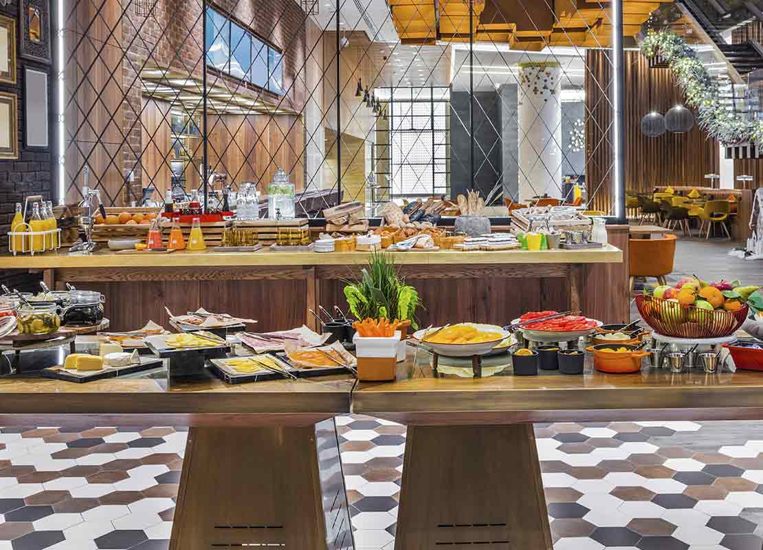 • ¿Qué incluye?: una amplia variedad de alimentos, como los que se encuentran en los desayunos continental y americano, además de estaciones de cocina en vivo donde se pueden preparar platos a la carta.